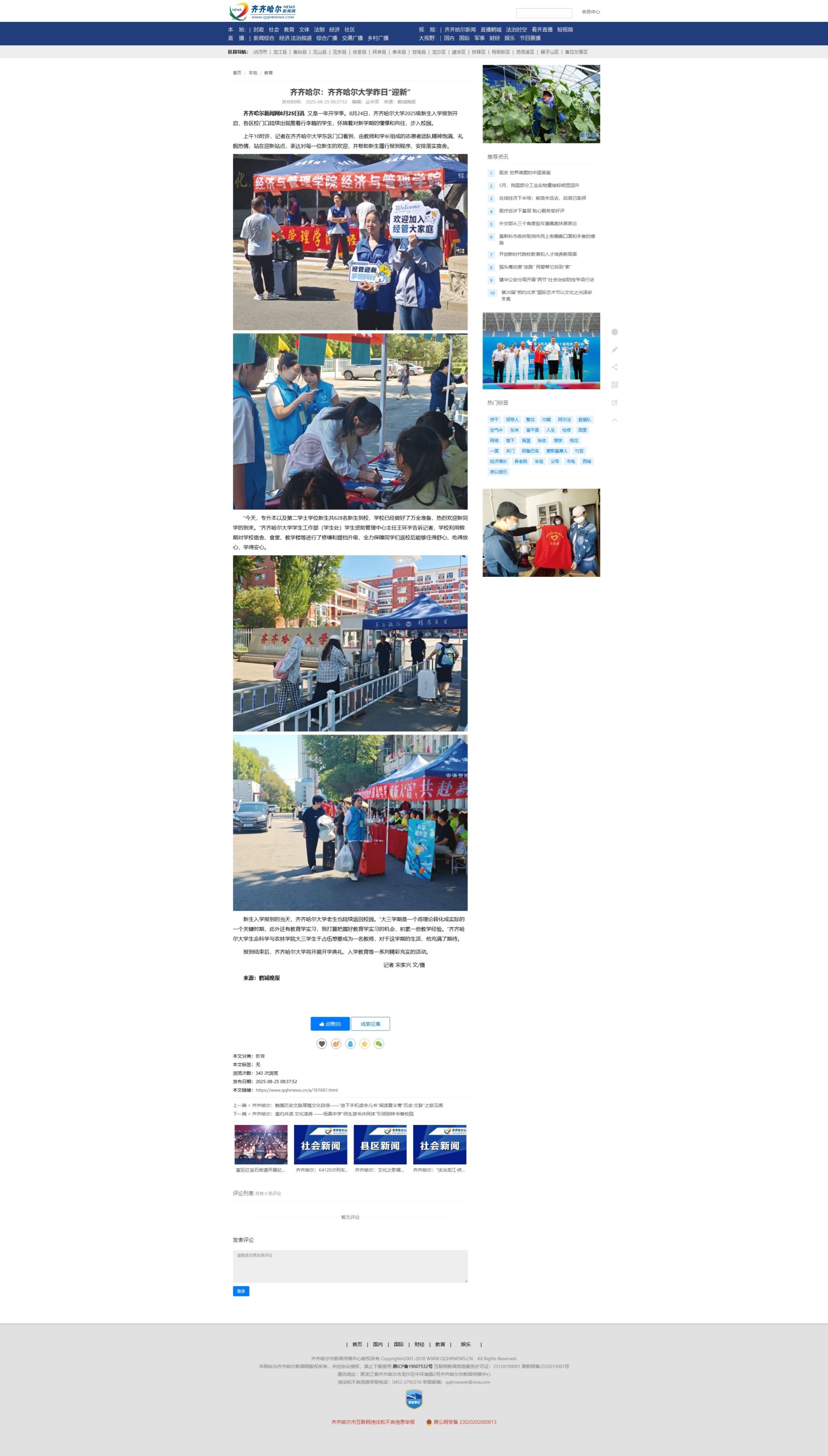 【齐齐哈尔日报】华体会地址是多少2025级新生入学报到开启